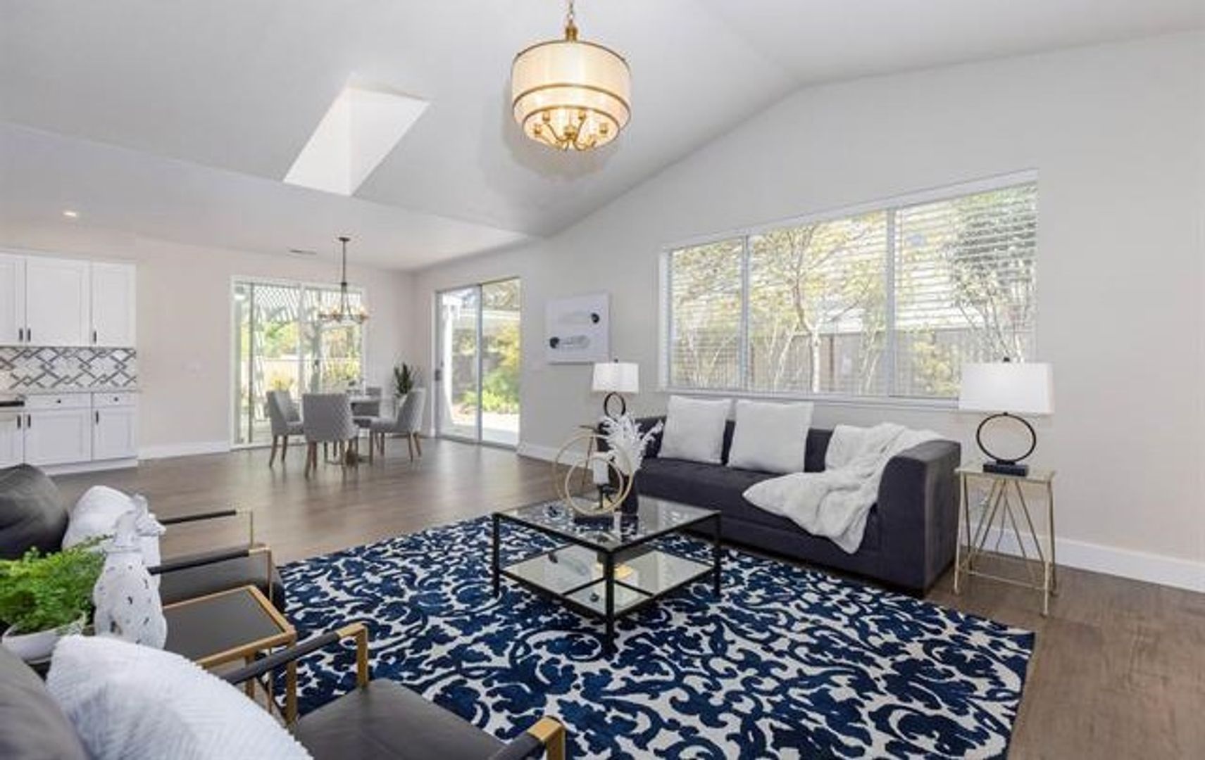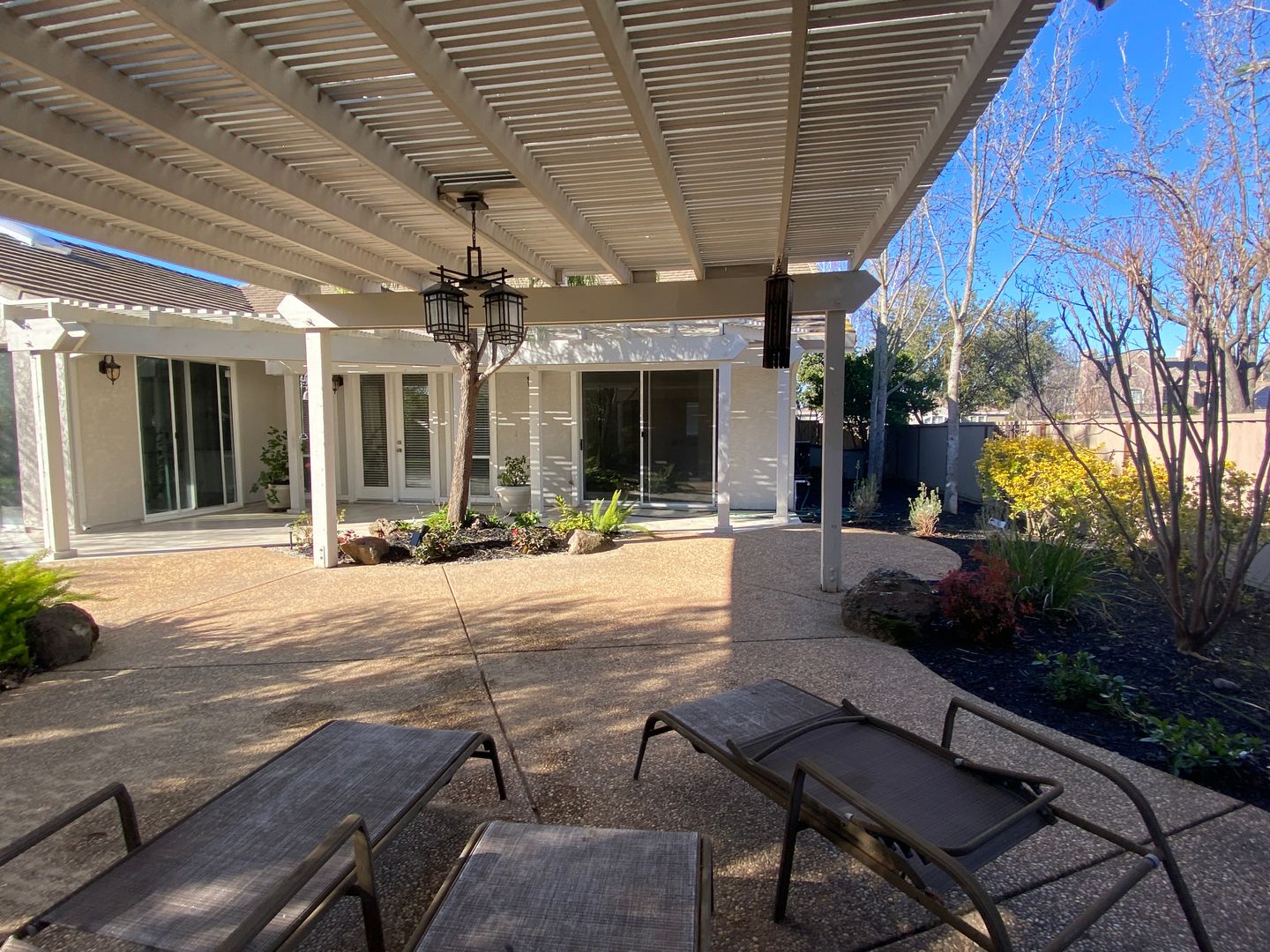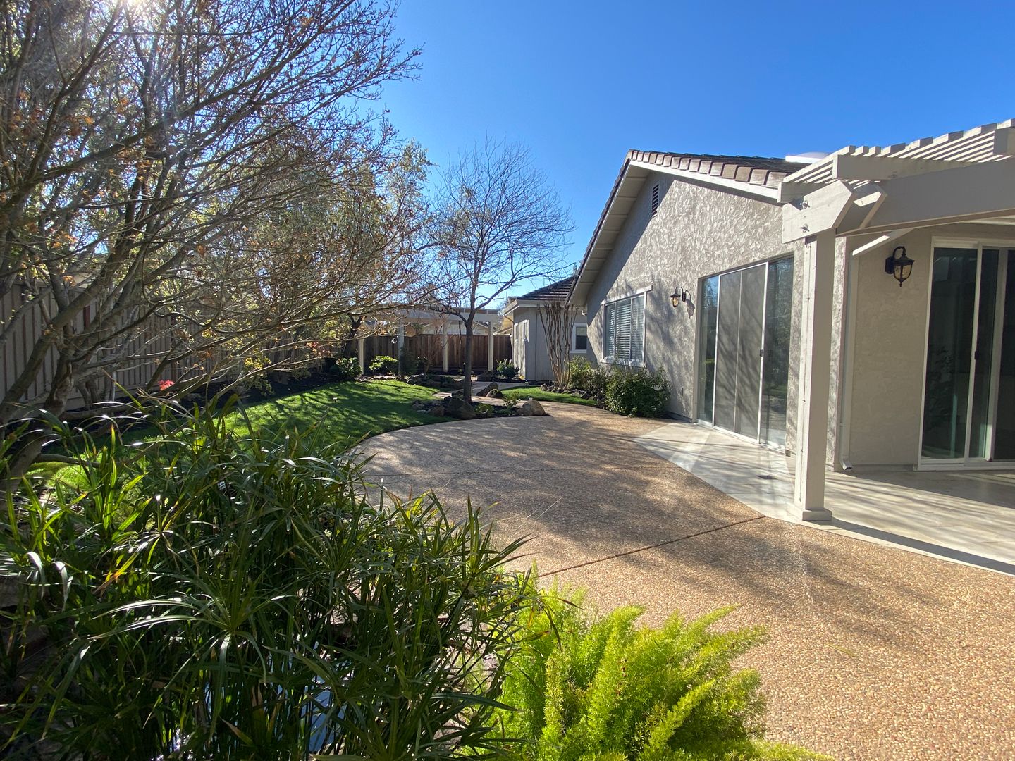 This bright and open 4-bedroom, 3-bath home has been completely updated with new flooring throughout. Located on a private corner lot, it offers a comfortable and functional layout. The spacious kitchen features granite countertops, a full backsplash, and a large center island, with plenty of room for cooking and gathering. A sunny breakfast nook opens to the family room with a modern gas fireplace, creating a warm and inviting space. The primary bedroom includes a private bath with a soaking tub, separate shower, and granite counters. All bathrooms and the laundry room also have granite finishes for a clean, updated look. Outside, the newly landscaped backyard provides plenty of space for kids to play and enjoy the outdoors.