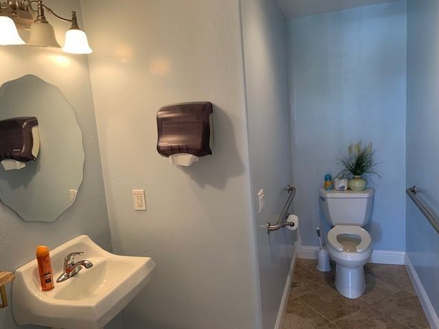Reception area with fireplace…. 1.5 baths ADA compliant with ramp rear entry. 3 rooms for treatment. Kitchen and stackable full washer dryer incl. 6 side parking spots and outdoor yard area to use (outdoor dining, food pickup etc) lots of possibilities. Main house 1096 sq ft. Forced heating and air.
